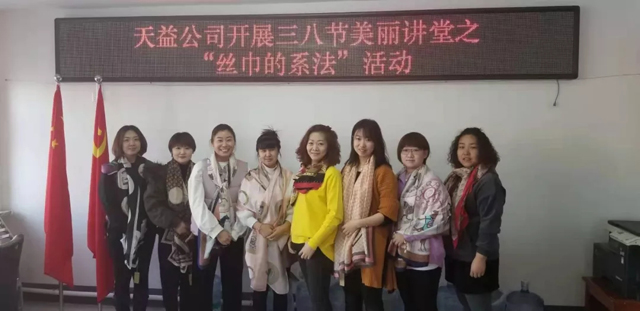 3月8日上午,天益公司舉辦了慶?!叭斯?jié),絲巾造型歡樂賽”活動(dòng),向偉大而無私奉獻(xiàn)的女性同志們致以節(jié)日的問候。