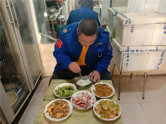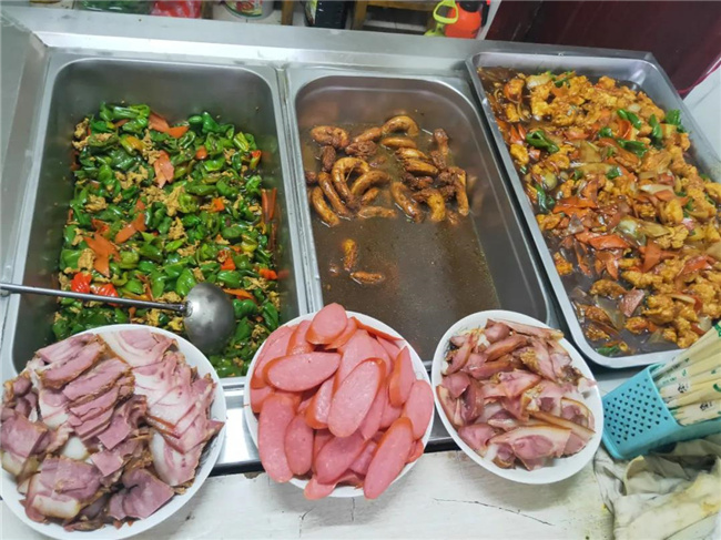職工們發(fā)現,車隊的職工食堂今天的伙食比往常額外增加了“硬菜”,有豬頭肉,香腸、熘肉段,醬雞脖、青椒炒雞蛋等菜品,職工們第一時間吃上醬香的豬頭肉,特別高興。