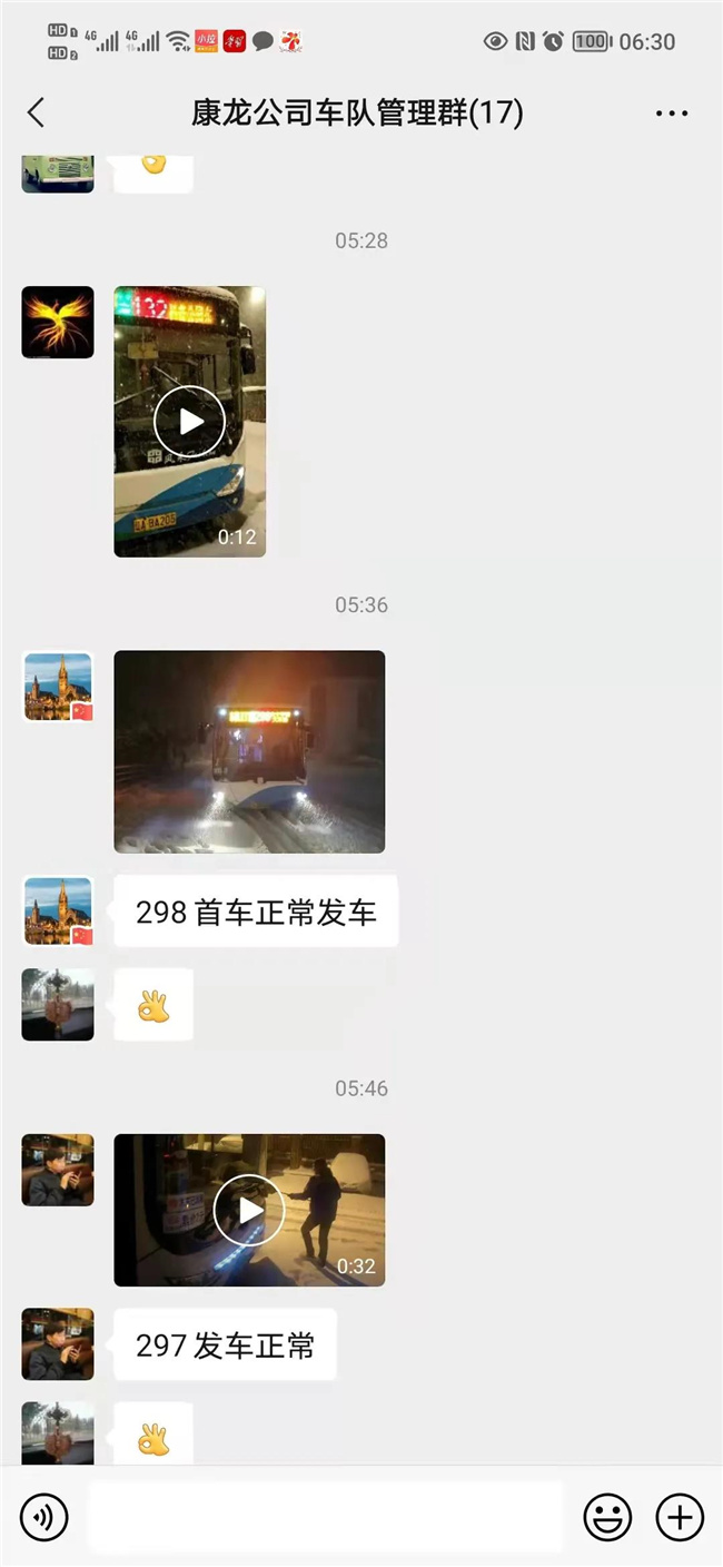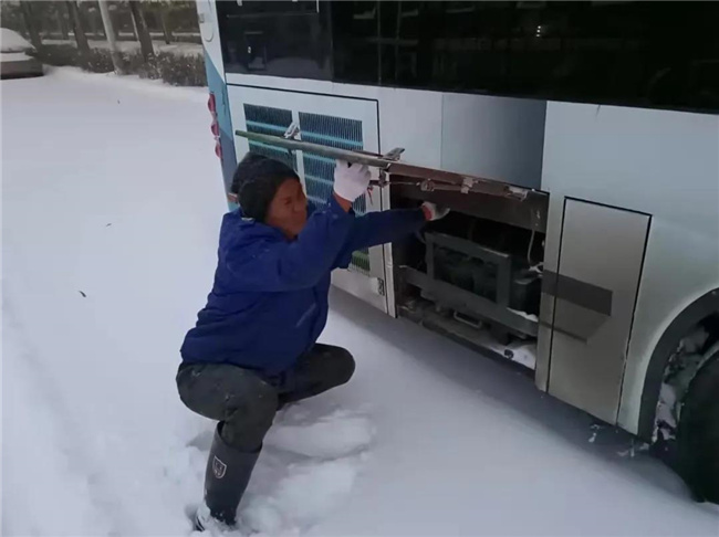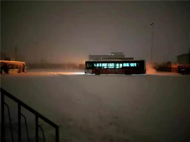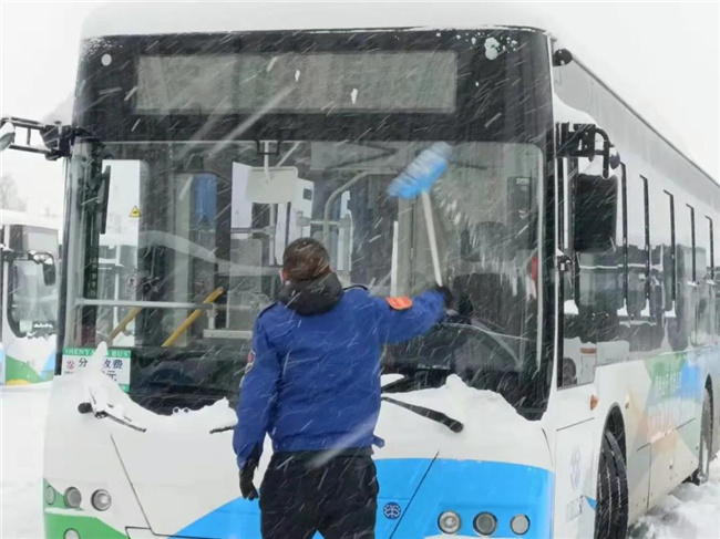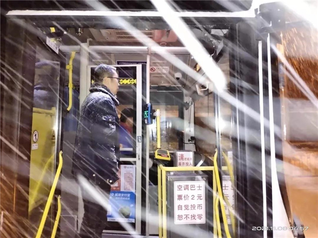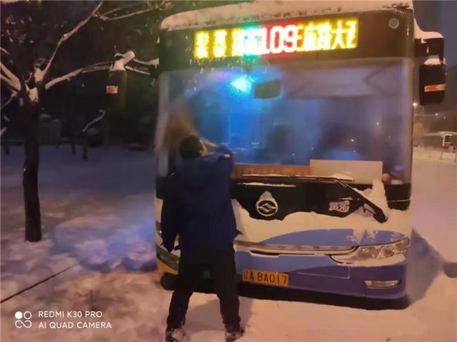 凌晨4點多,第一班車的駕駛員就已經提前到崗,清掃積雪,預熱車輛...