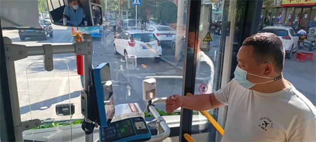 鑫暢公司各車隊(duì)認(rèn)真檢查駕駛員核酸陰性報(bào)告,囑咐駕駛員檢查乘客“防疫四件套”,并繼續(xù)嚴(yán)格對車輛進(jìn)行消毒,保證車內(nèi)整潔衛(wèi)生。