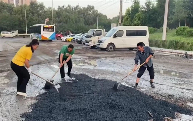 為盡快解決路面問題,消除安全隱患,黃河公司在資金極度緊缺的情況下,本著辦法總比困難多的積極態(tài)度,通過聯(lián)系市政施工隊以進場的方式來修復破損路面。