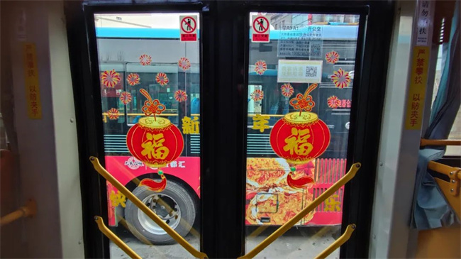 在辭舊迎新之際,通運公司249路駕駛員王眾自費購買了小燈籠,拉花,窗花,福字等飾品來扮靚自己的愛車。被精心“打扮”后的車廂,年味十足。