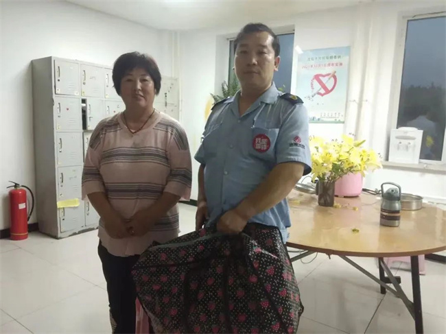 一小時后,一位姓王的女士趕到車隊,詢問是否有人拾到一個編織袋,核實無誤后,吳喆將失物交還給王女士。