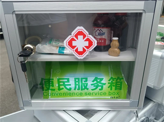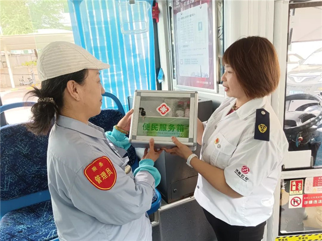 209路車隊的每臺單車上新增配置了印有“紅十字”標(biāo)志的便民服務(wù)箱,里面放置了口罩、速效救心丸、止血帶、碘伏等日常使用的各類物品。廣大乘客在乘坐公交車時,一旦出現(xiàn)緊急情況,可以得到及時有效的幫助和初級救治。