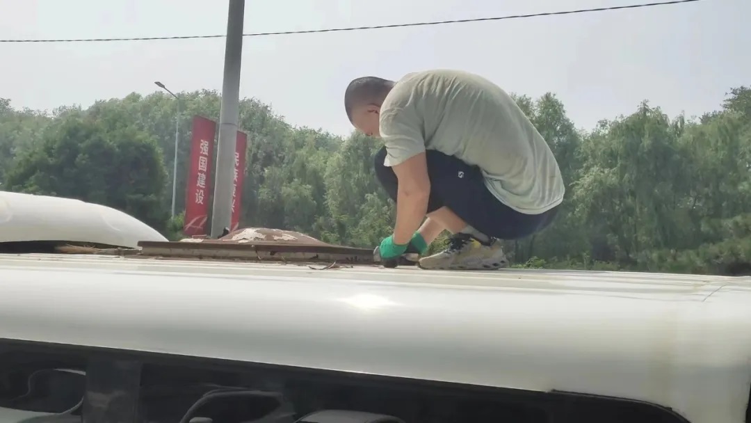 在檢查中,車隊(duì)發(fā)現(xiàn)部分車輛的天窗出現(xiàn)了漏雨現(xiàn)象,給乘客出行帶來了不便。為了讓市民擁有一個(gè)舒適安全的乘車環(huán)境,車隊(duì)機(jī)務(wù)隊(duì)長利用站停間隙,對(duì)漏雨車輛展開密封堵漏整改工作,并為每臺(tái)公交車更換了前風(fēng)擋雨刷,以確保駕駛員在雨天擁有清晰的視野,安全駕駛。