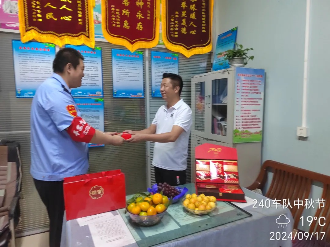 中秋佳節(jié),240路車隊為駕駛員準(zhǔn)備了月餅和水果。