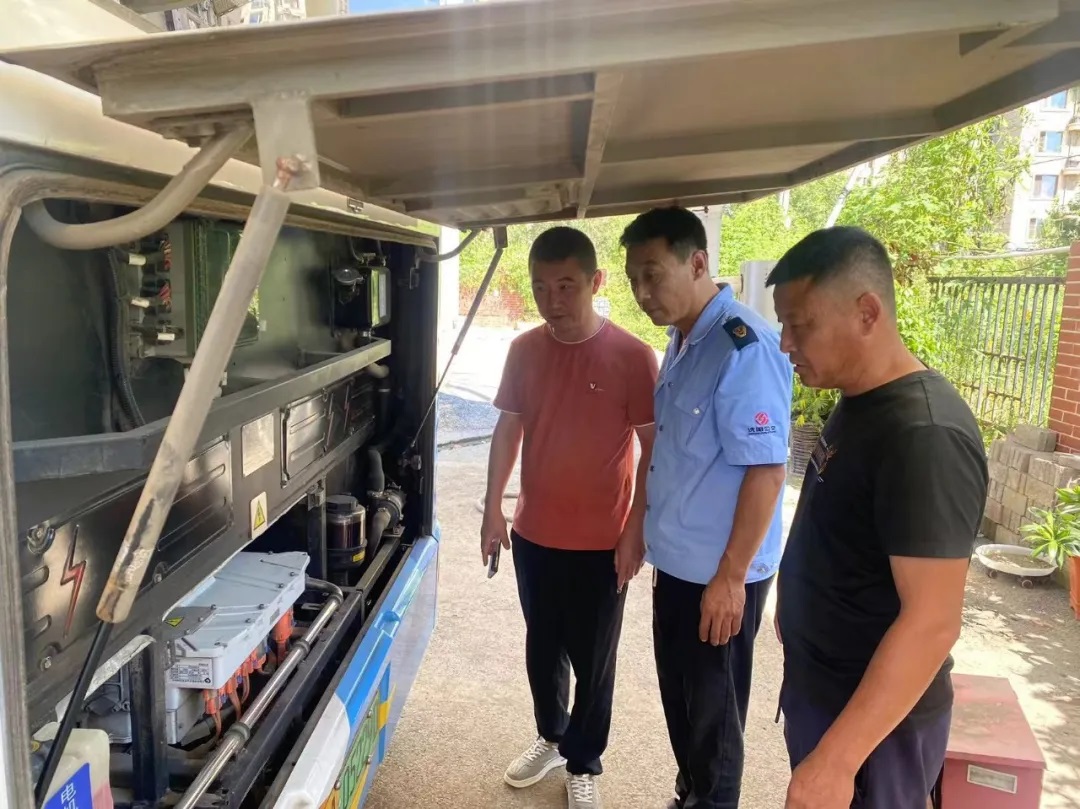 場面四:217、302路車隊對本線路車輛逐一進行排查,消除安全隱患,確保節(jié)日期間廣大市民安全順利出行。