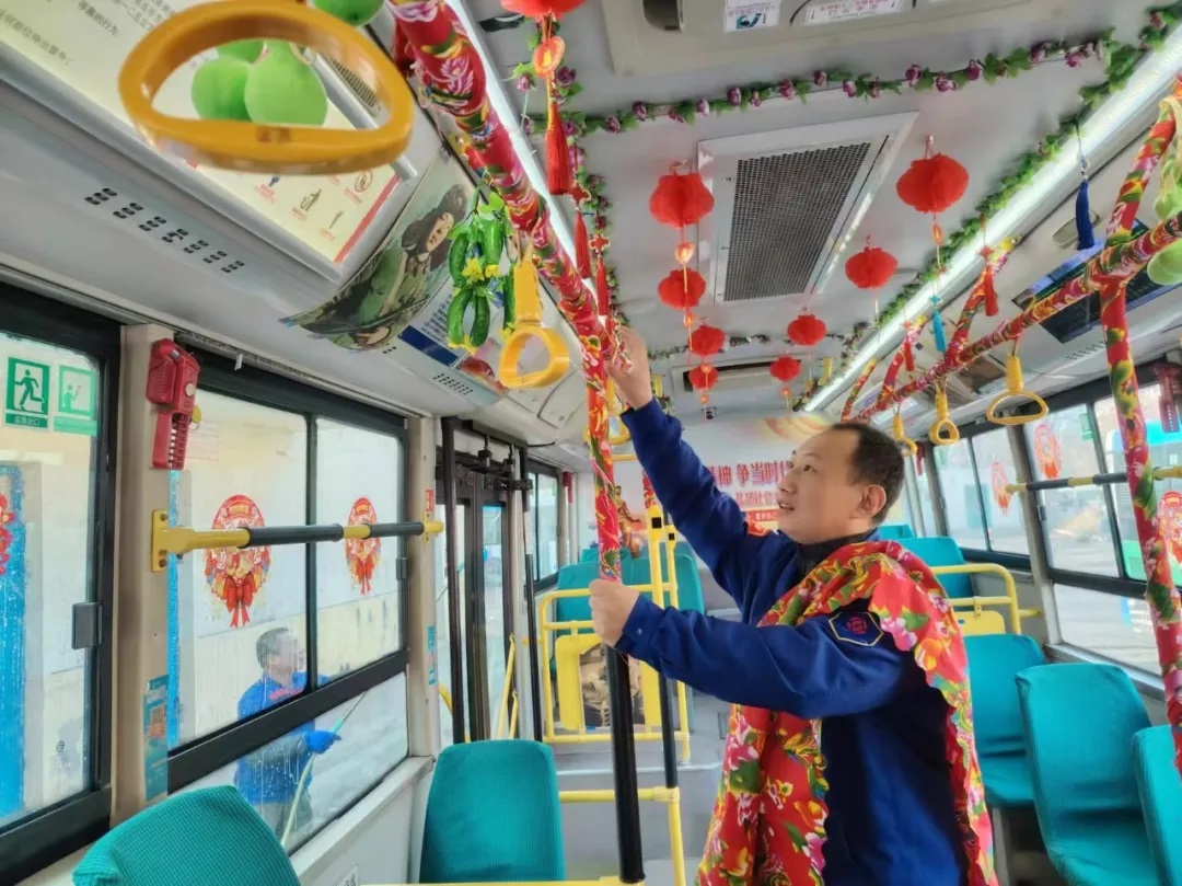 據(jù)了解,元旦前夕,沈陽客運集團按照全市“我是雷鋒”——沈陽市窗口行業(yè)文明誠信服務(wù)寵客(qiě)行動工作安排,落實全市“雙節(jié)”節(jié)日氛圍布置工作要求,積極開展“布置車廂,扮靚沈陽”行動,各車隊利用行車間歇和休息時間裝扮車輛,懸掛新年拉花、紅燈籠,張貼新年窗花及融入“蛇年”元素的貼紙等。目前,已有1188臺途經(jīng)主要街路、景區(qū)、商業(yè)街區(qū)的公交車輛完成了裝飾,車內(nèi)年味十足,客運集團計劃在春節(jié)之前完成全部運營車輛的裝飾布置工作。