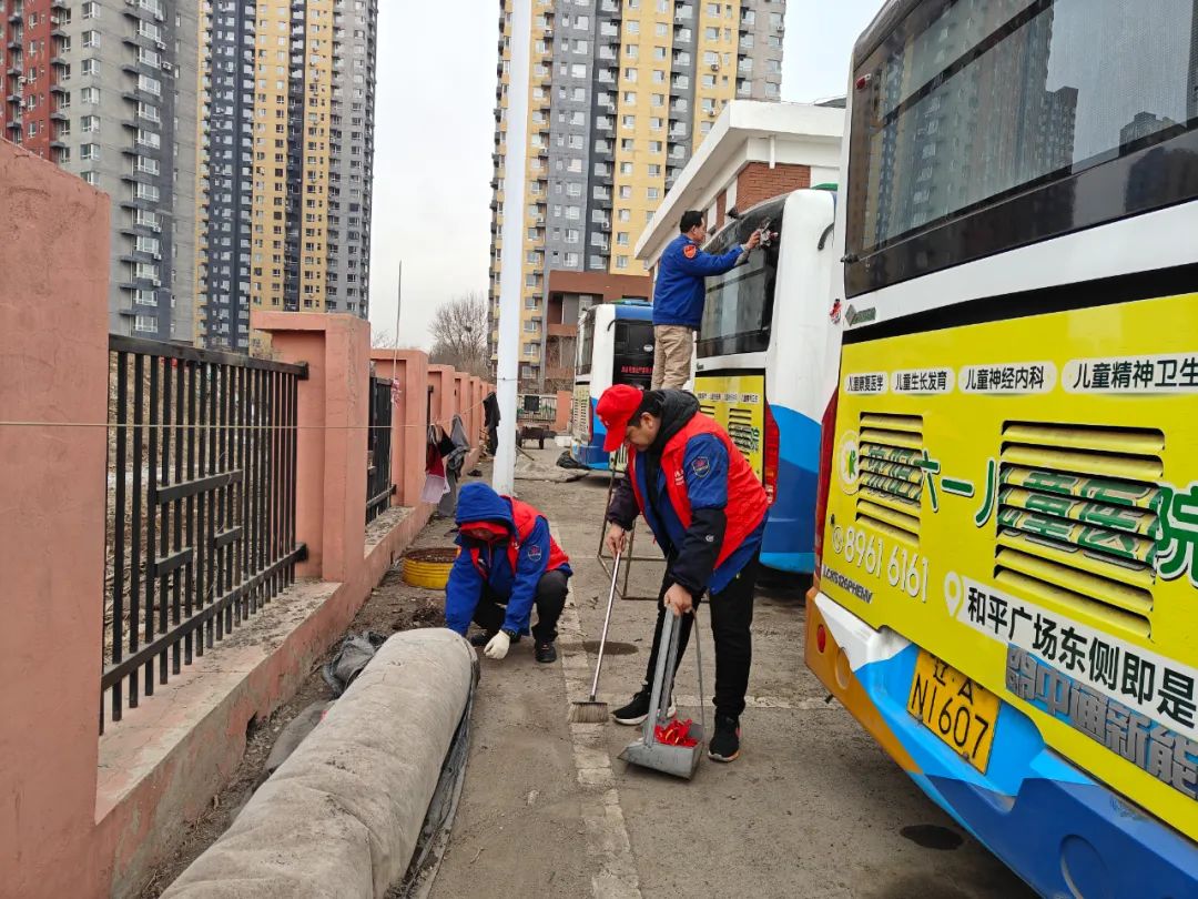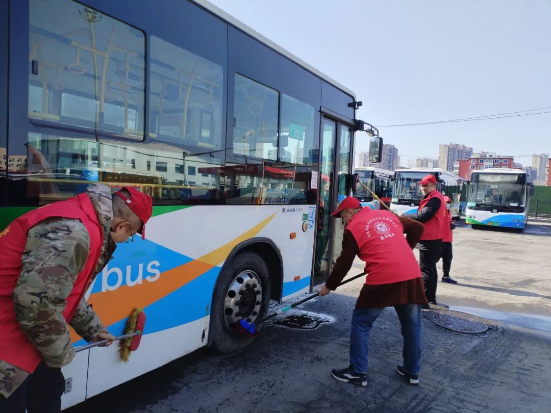早春的寒風(fēng)依舊冷冽,活動中,志愿者們不畏寒冷,身穿帶有志愿服務(wù)標(biāo)識的紅色馬甲,手拿清潔工具,對公交車輛、場站、候車?yán)鹊葓鏊M行清掃,為乘客提供干凈舒適的出行環(huán)境。