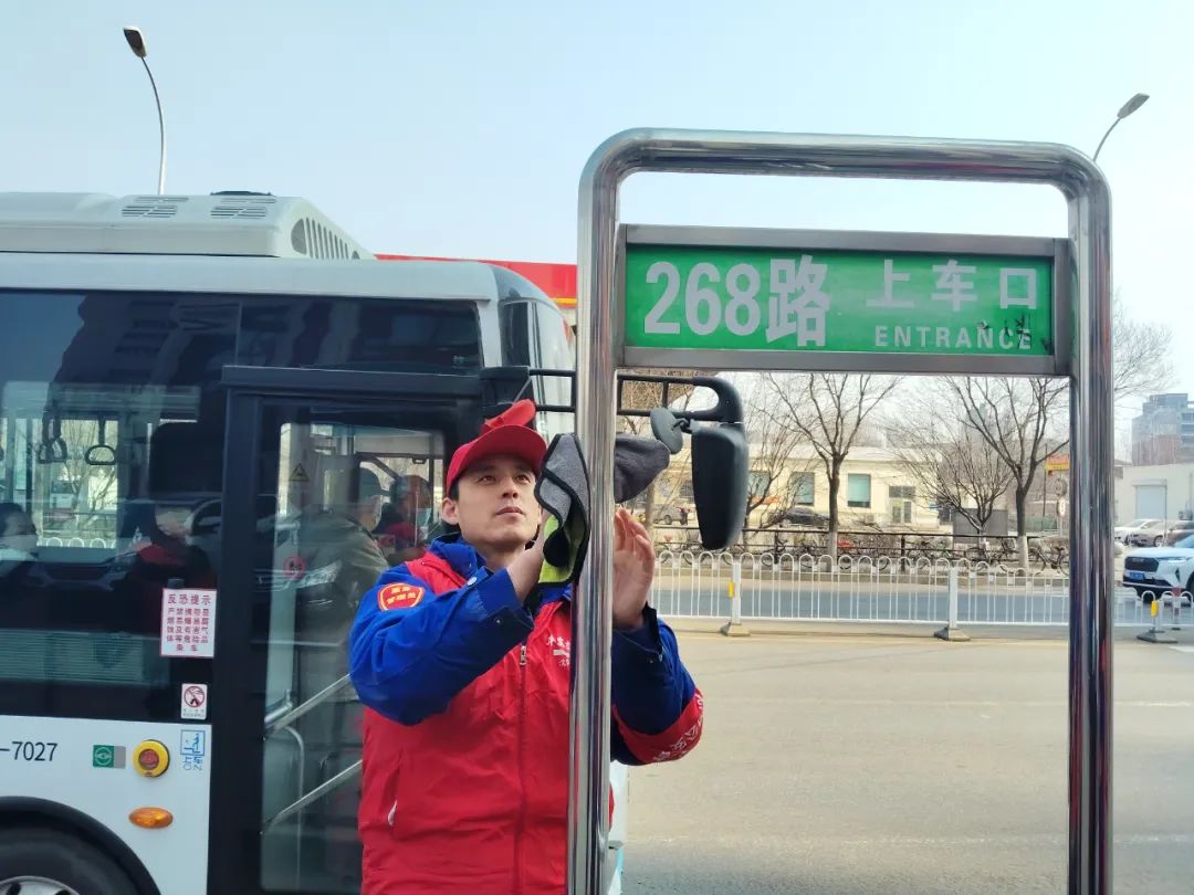 身披紅色綬帶的志愿者們熱情滿滿,為乘客提供咨詢引導(dǎo)服務(wù),耐心解答各類出行疑問,幫助公交站點進行環(huán)境升級。