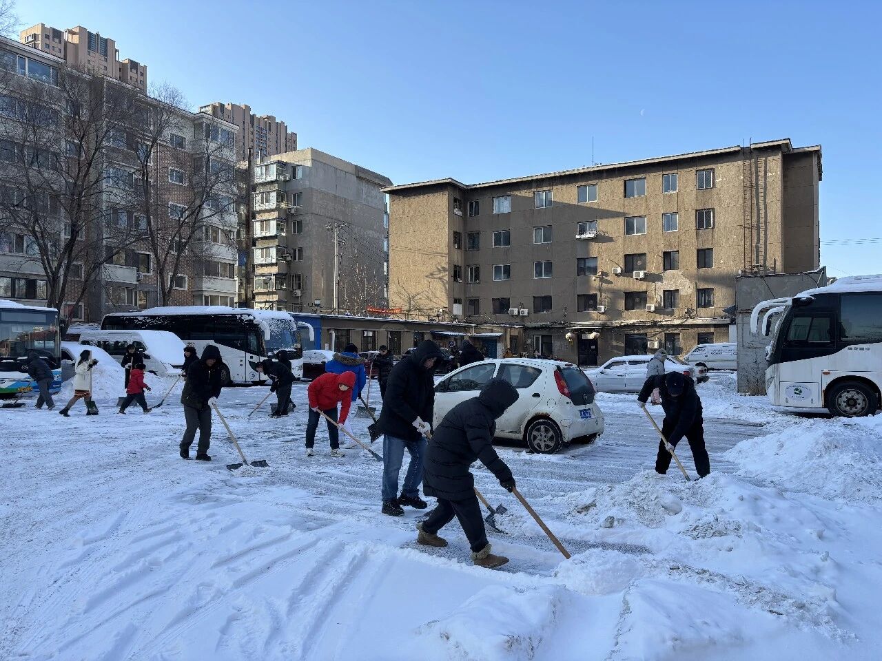 上午降雪漸止后,沈陽客運集團積極響應(yīng)上級號召,迅速組織廣大黨員干部職工開展志愿掃雪行動。大家對場區(qū)、車隊駐地、辦公樓周邊及公共區(qū)域展開全面清雪除冰工作,以實際行動踐行“我為群眾辦實事”,在寒冬中詮釋黨員的責(zé)任與擔(dān)當(dāng)。