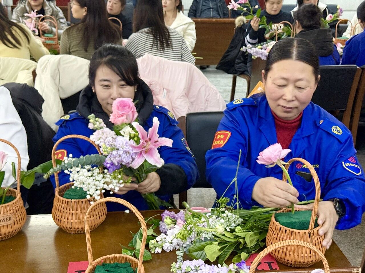 隨后,活動進入了令人期待的花藝創(chuàng)作環(huán)節(jié)。集團工會特別邀請了專業(yè)花藝講師進行現(xiàn)場教學。伴隨著輕柔的音樂,女職工們充分發(fā)揮想象力和創(chuàng)造力,她們或凝神構(gòu)思,或精心修剪,或熱烈討論。玫瑰的嬌艷、康乃馨的溫馨、洋桔梗的雅致……原本普通的花枝在她們的巧手修剪與創(chuàng)意組合下,變成了一籃籃錯落有致、生機盎然的藝術(shù)品。每一件作品都蘊含著對美的理解和對生活的熱愛,現(xiàn)場花香與笑聲交織,氣氛溫馨而熱烈。