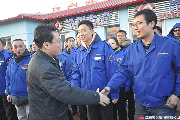 2018年2月14日下午 17時(shí),姜有為市長一行在沈陽市交通局長楊樹同志、沈陽客運(yùn)集團(tuán)有限公司董事長徐健同志的陪同下,來到集團(tuán)公司金山公交樞紐站,向節(jié)日期間仍堅(jiān)守在公交崗位的一線職工致以親切問候:“感謝大家一年來辛苦的付出,尤其在節(jié)日期間大家還堅(jiān)守崗位,為全城人民奉獻(xiàn),衷心的感謝大家!借此機(jī)會(huì)給大家拜年,祝大家新的一年里,百尺竿頭、更近一步;祝大家身體健康、工作順利、家庭幸福、萬事如意!”