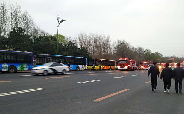 按照市交通局指令,沈陽客運集團有限公司迅速啟動應急響應,成立棋盤山大火救援疏散臨時指揮部,以最短時間集結公交車輛82輛(不含棋盤山公交線路的168路)做為疏散預備車,其中鑫暢公司7輛、通利公司27輛、天益公司48輛。期間,疏散市民合計出車13輛次,疏散居民378人,其中5輛車由靜安康復中心向馬耳山分院運送160余人;1輛車由上木村向英達小學運送23人;1輛車由泗水村向英達中學運送25人;1輛車由何氏醫(yī)學院向龍之夢地鐵站運送40人;5輛車由劉家屯養(yǎng)老中心向沈河區(qū)、大東區(qū)、皇姑區(qū)、渾南區(qū)養(yǎng)老中心運送130人。