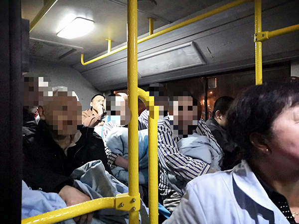 在預備車輛前往集結地點的途中,鑫暢公司384路車隊徐躍接到了位于線路附近沈陽靜安國際心理康復中心的求助電話,那里有醫(yī)患人員近160余人需要緊急撤離。集團公司臨時指揮部立即下達384路車隊就地組織執(zhí)行疏散命令。384路車隊根據(jù)現(xiàn)場情況,留下五輛車執(zhí)行撤離輸送任務,另外兩輛車前往集結點待命。