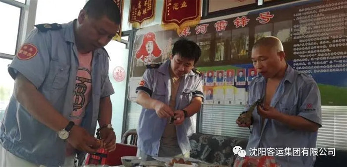 端午節(jié),239、252車隊為一線員工準(zhǔn)備了粽子、雞蛋、水果等食品,駕駛員們吃粽子頂雞蛋,享受著節(jié)日的快樂。