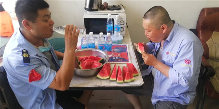 康利公司各車(chē)隊(duì)為駕駛員準(zhǔn)備了豐盛的午餐——餃子,為了給駕駛員防暑降溫、緩解疲勞,準(zhǔn)備了冰鎮(zhèn)西瓜和冰鎮(zhèn)礦泉水。同時(shí)也叮囑駕駛員要注意休息,保證身心健康。