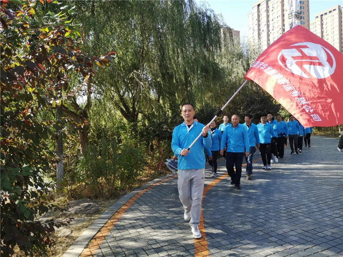 隨著孫書記一聲令下——“出發(fā)!”參加健身徒步的選手們迎著秋日的暖陽和微風(fēng),高舉旗幟,闊步前行。