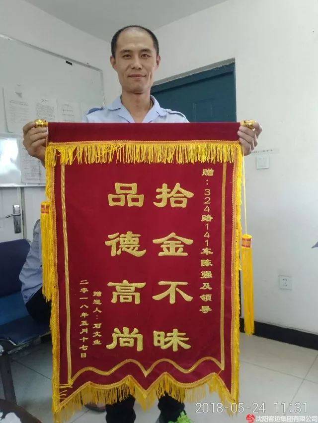 當(dāng)你發(fā)現(xiàn)路上有個(gè)錢(qián)包,你會(huì)怎么辦?是否會(huì)著急地想辦法聯(lián)系失主,還是事不關(guān)己高高掛起,又還是當(dāng)做一筆意外財(cái)?324路駕駛員陳強(qiáng)給出了自己的答案。5月4日,家住沈陽(yáng)的市民不慎丟失鑰匙門(mén)卡等物品,在他心急如焚時(shí),一個(gè)駕駛員的行為讓他至今都覺(jué)得心里暖暖的。當(dāng)天上午,陳強(qiáng)師傅一如既往地駕駛遼AJ1402公交車(chē)行駛在沈陽(yáng)的大街小巷,車(chē)輛到達(dá)終點(diǎn)后正準(zhǔn)備收拾車(chē)廂,發(fā)現(xiàn)有鑰匙門(mén)卡等物品遺落在座位上,陳強(qiáng)立即向車(chē)隊(duì)領(lǐng)導(dǎo)匯報(bào)此事,并交到車(chē)隊(duì)。等失主找到車(chē)隊(duì)時(shí),隊(duì)長(zhǎng)把物品歸還給失主,失主十分激動(dòng)當(dāng)時(shí)拿出現(xiàn)金表示感謝,但被陳強(qiáng)傅婉言拒絕,事后失主做了一面錦旗送到了車(chē)隊(duì)以表感謝。