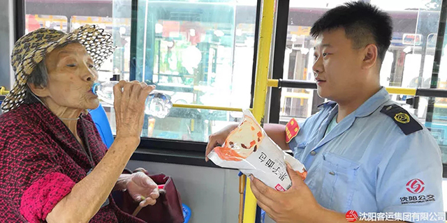 無獨(dú)有偶,第二天這位駕駛員孫鵬又做了一件好事,有位90多歲的老人獨(dú)自一人在淮河街上車,見老人狀態(tài)極其不佳,孫鵬便上前詢問老人家庭住址,經(jīng)詢問得知老人迷路找不到了家。孫鵬第一時(shí)間將老人帶回車隊(duì)并給老人買來礦泉水和面包。