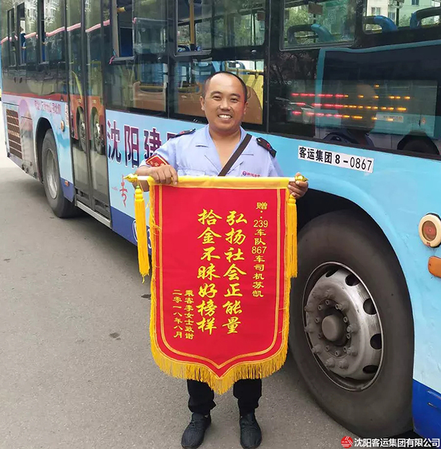 8月23日上午,乘客李女士帶著女兒將一面錦旗送到康利公司239車隊,并要當(dāng)面感謝好心駕駛員蘇凱。